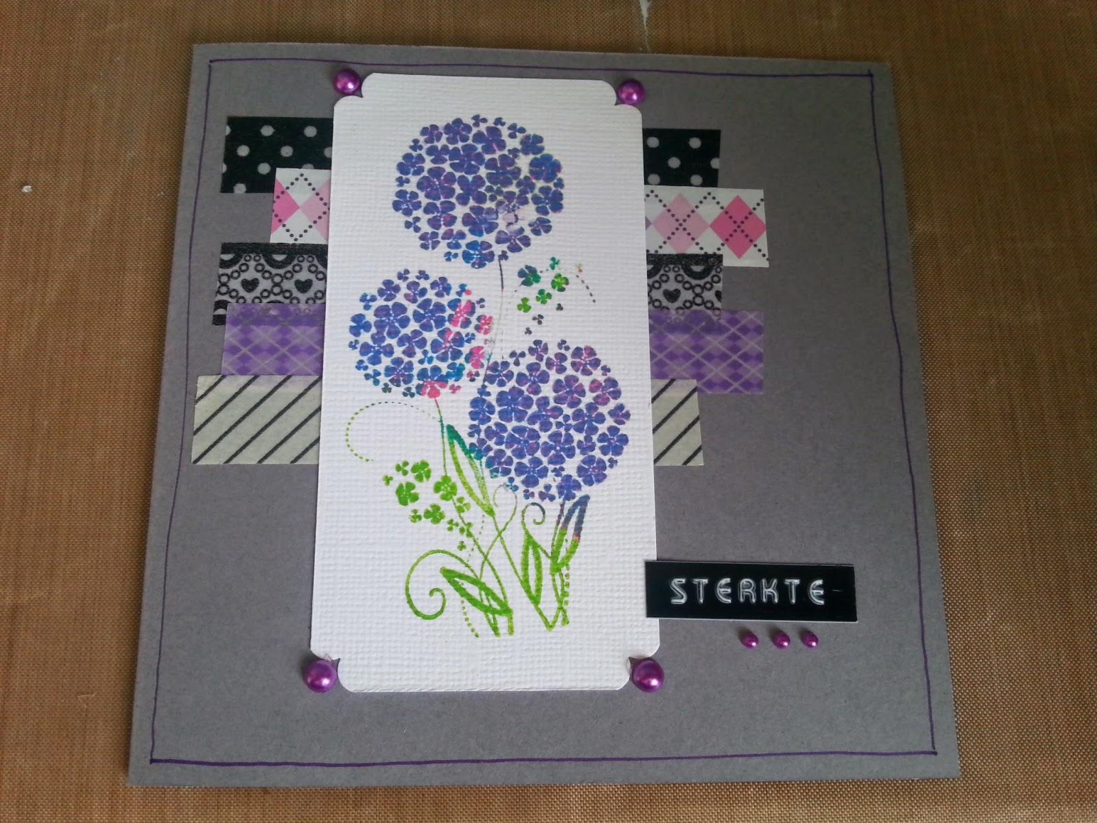 I used some leftovers of designpaper and embellishments and I was horsing around with stamps, ink, modeling past, templates and perlenpen. To finish I used some washi tape, flowers, twine, buttons and rub-ons.